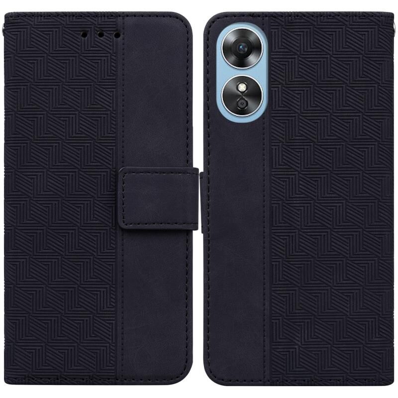 Για OPPO A17 γεωμετρική ανάγλυφη Flip δέρμα τηλέφωνο υπόθεση (μαύρο)