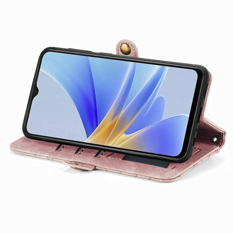 Θήκη τηλεφώνου δερμάτινη με φερμουάρ και πλευρική αγκράφα για OPPO A17, γεωμετρικού σχεδιασμού (Μαύρο)