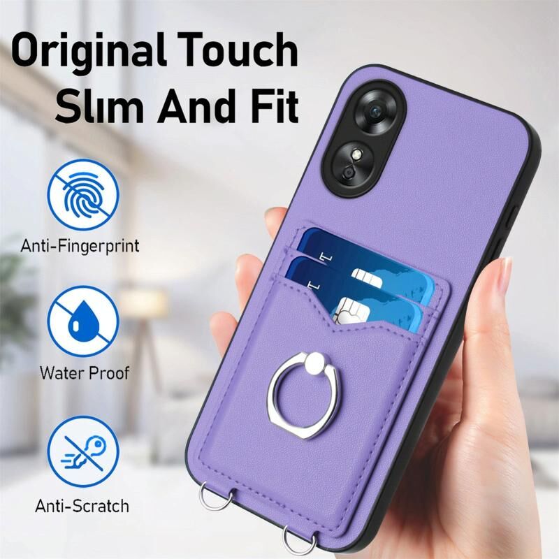 Για OPPO A17 Παγκόσμια R20 Δαχτυλίδι κάρτα κάτοχος υπόθεση τηλεφώνου (Μωβ)