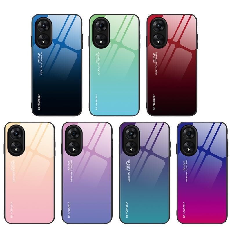 Για OPPO A17 Κλιμακωτό χρώμα γυαλί τηλέφωνο υπόθεση (κίτρινο ροζ)