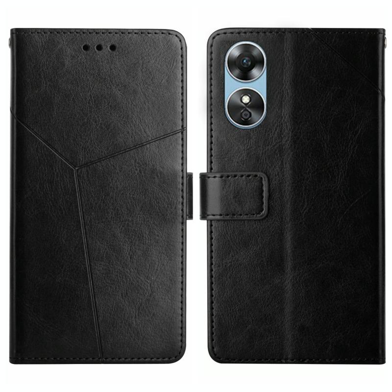 Θήκη τηλεφώνου από δέρμα με σχέδιο σε σχήμα Υ για OPPO A17 HT01 (Κόκκινο)