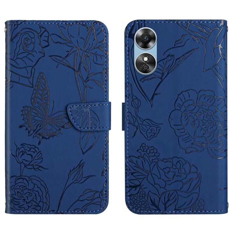 Για OPPO A17 HT03 δέρμα αίσθηση πεταλούδα ανάγλυφο Flip υπόθεση τηλεφώνου δέρμα (Μπλε)