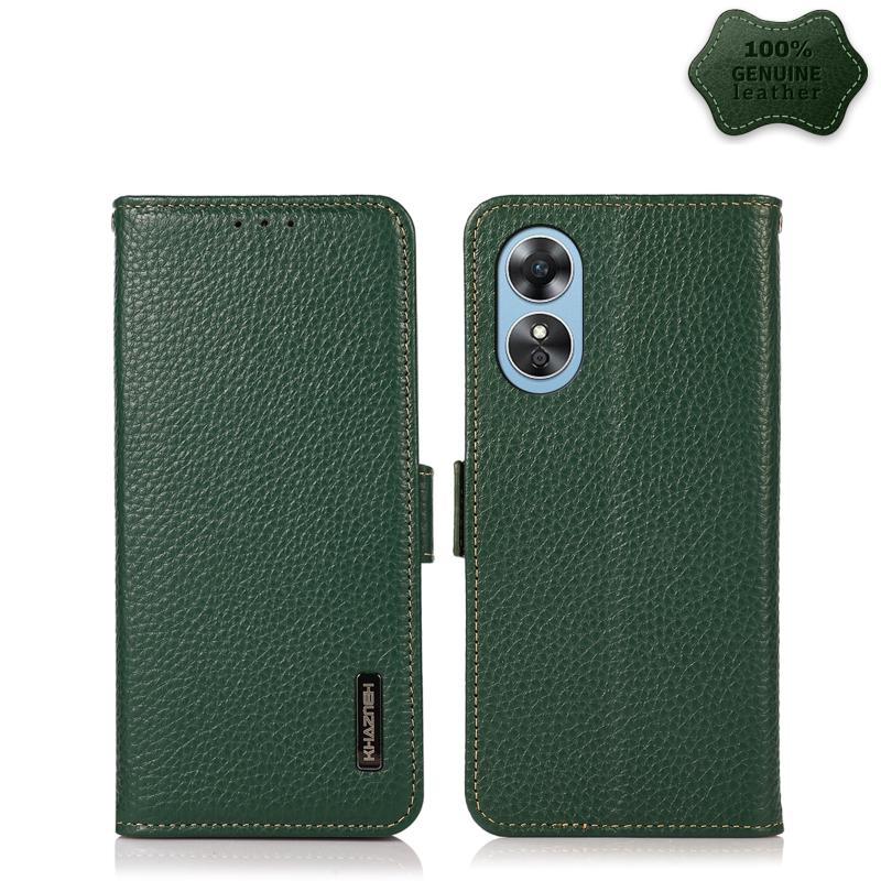 Θήκη τηλεφώνου OPPO A17 KHAZNEH με μαγνητικό κλείσιμο, από γνήσιο δέρμα Litchi και προστασία RFID (πράσινο)