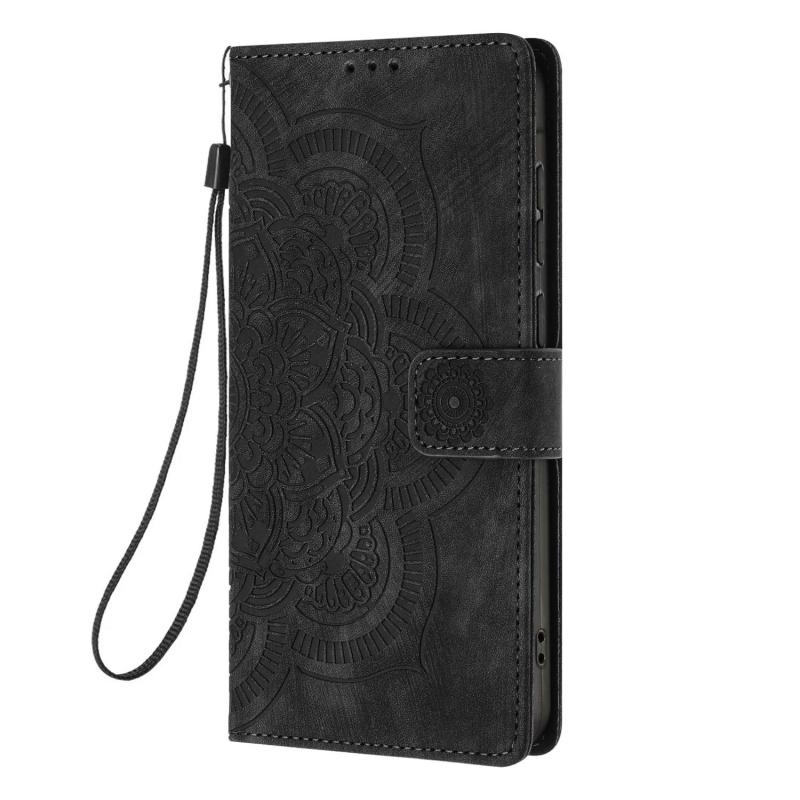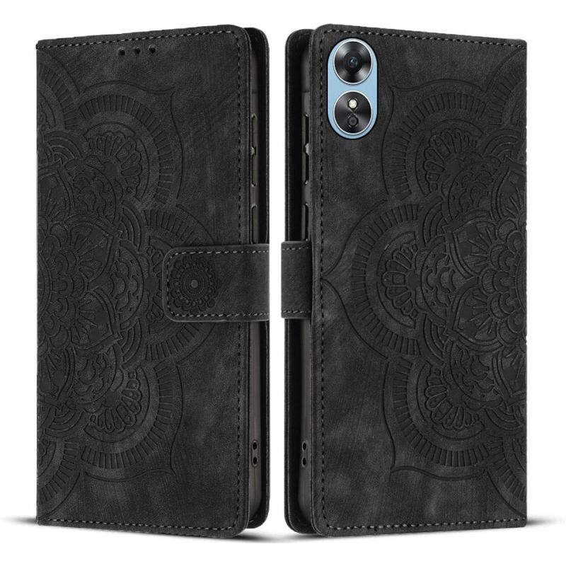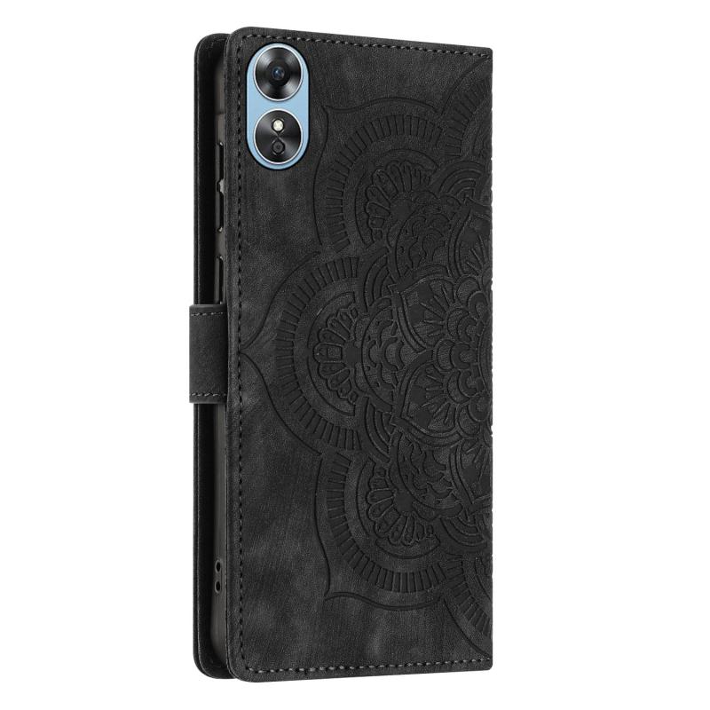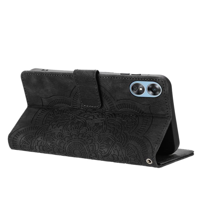 For OPPO A17 Mandala Embossed Retro Frosted Leather Phone Case(Black)