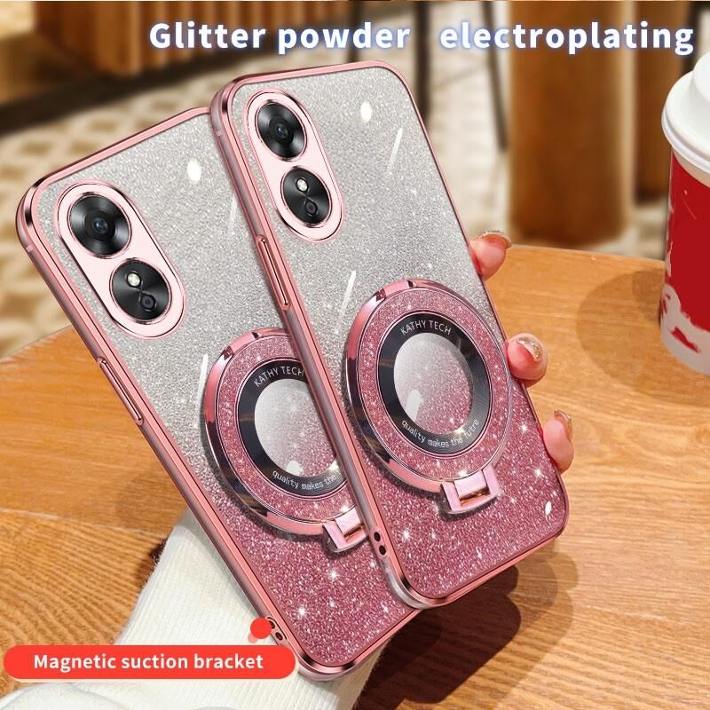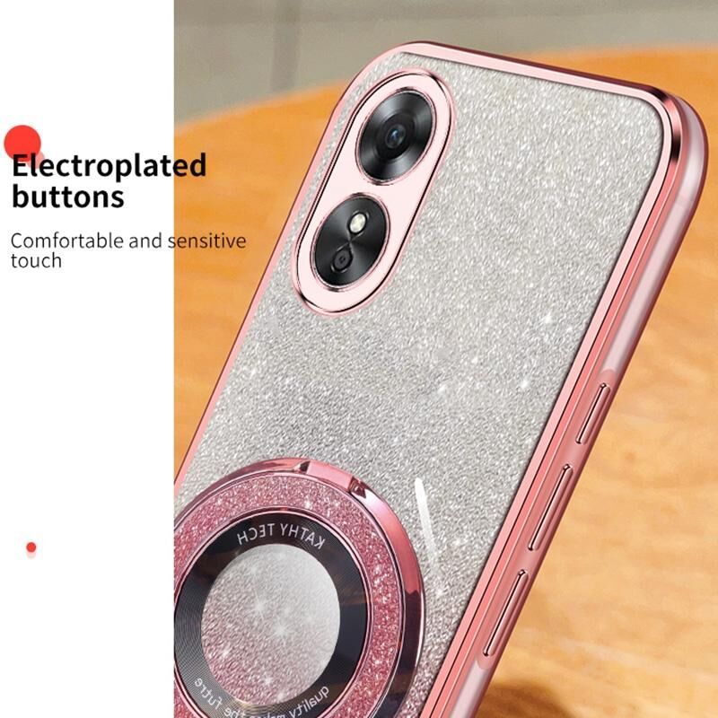 Θήκη τηλεφώνου TPU με στρογγυλό στήριγμα, γυαλιστερό ντεγκραντέ με επιμετάλλωση για OPPO A17 (Ασημί)