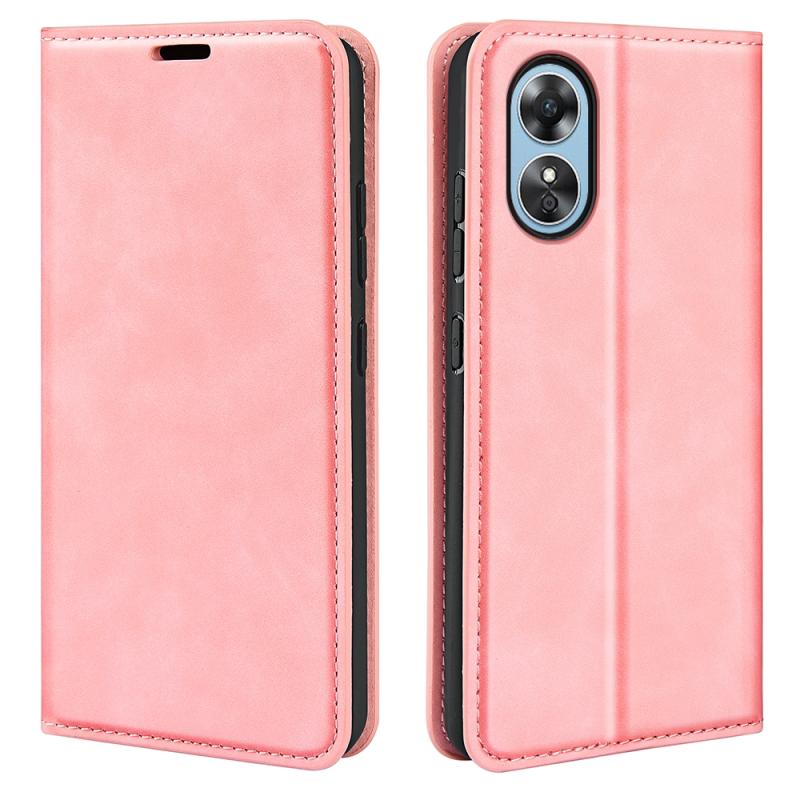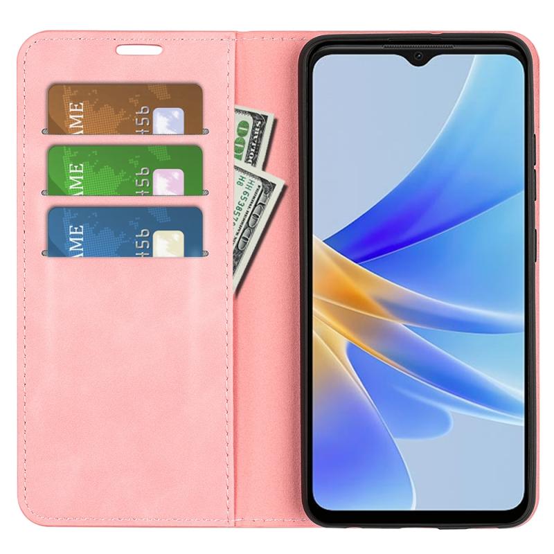 Για OPPO A17 Retro-skin μαγνητική δερμάτινη θήκη τηλεφώνου αναρρόφησης (ροζ)