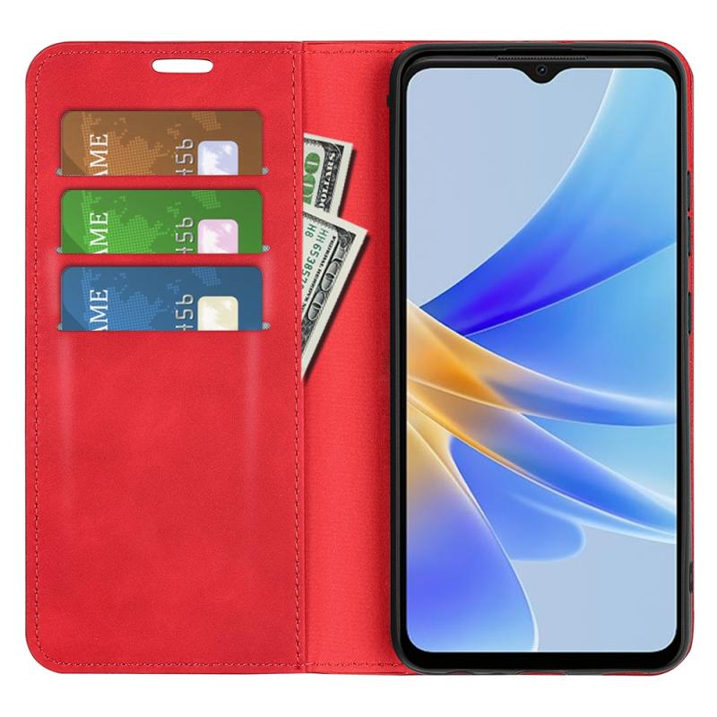 Για OPPO A17 Retro-skin μαγνητική δερμάτινη θήκη τηλεφώνου αναρρόφησης (κόκκινο)
