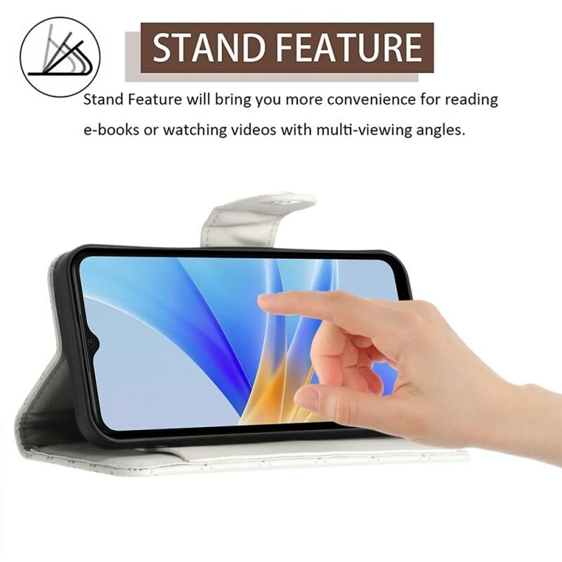 Για το OPPO A17 Rhombic υφή Flip δερμάτινη θήκη τηλεφώνου με μακρύ κορδόνι (λευκό)
