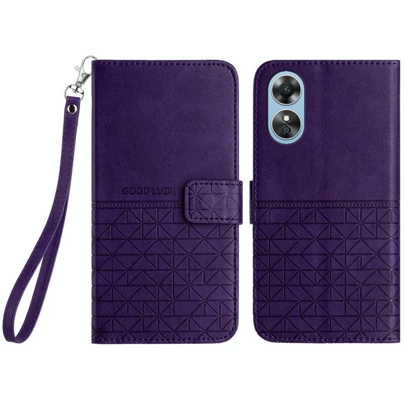 For OPPO A17 Rhombic Texture Leather Phone Case with Lanyard(Purple)