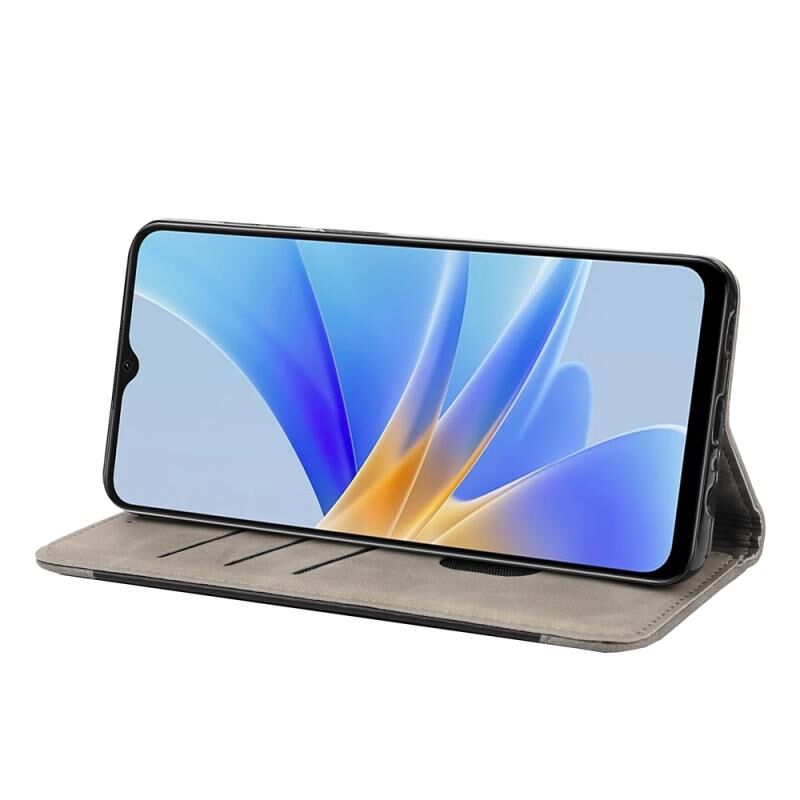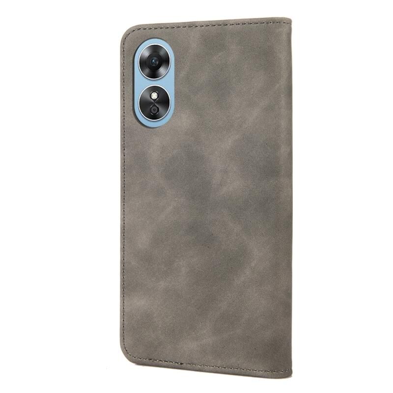 Θήκη τηλεφώνου από δέρμα με αίσθηση αφής και ραφές για OPPO A17 (Γκρι)