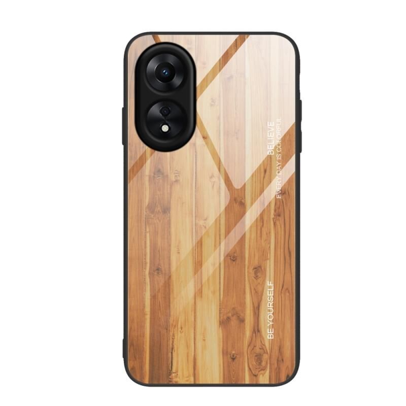 Για OPPO A17 Wood Grain Γυάλινη θήκη τηλεφώνου (Κίτρινο)