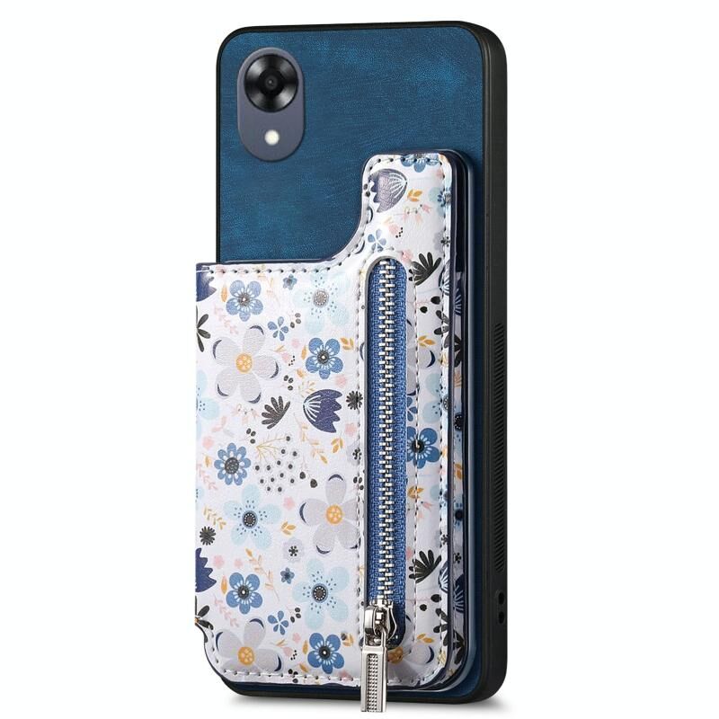Για OPPO A17K Ρετρό ζωγραφισμένο φερμουάρ πορτοφόλι πίσω τηλέφωνο υπόθεση (μπλε)