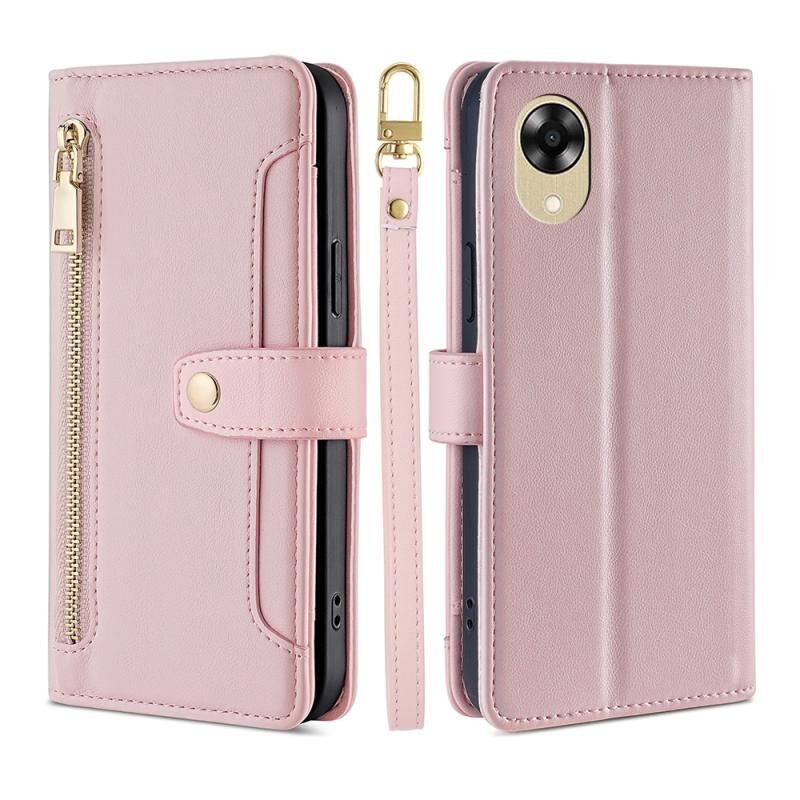 Για OPPO A17k Πρόβατα Υφή Cross-body φερμουάρ πορτοφόλι δερμάτινη θήκη τηλεφώνου (ρόζ)