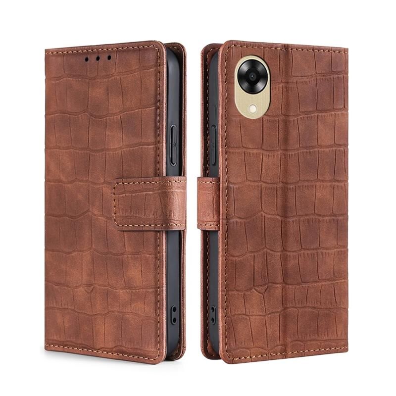 Θήκη τηλεφώνου από δέρμα με μαγνητικό κούμπωμα και υφή κροκόδειλου για OPPO A17k (Καφέ)