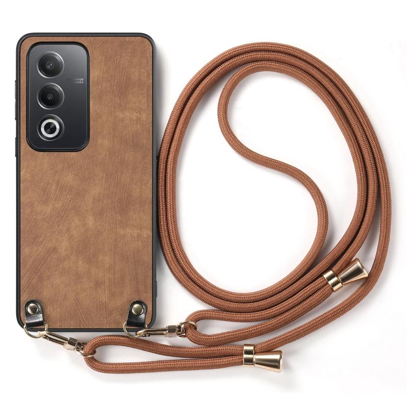 Θήκη κινητού τηλεφώνου OPPO A17K από δέρμα vintage και PC με λουρί χιαστί (Καφέ)