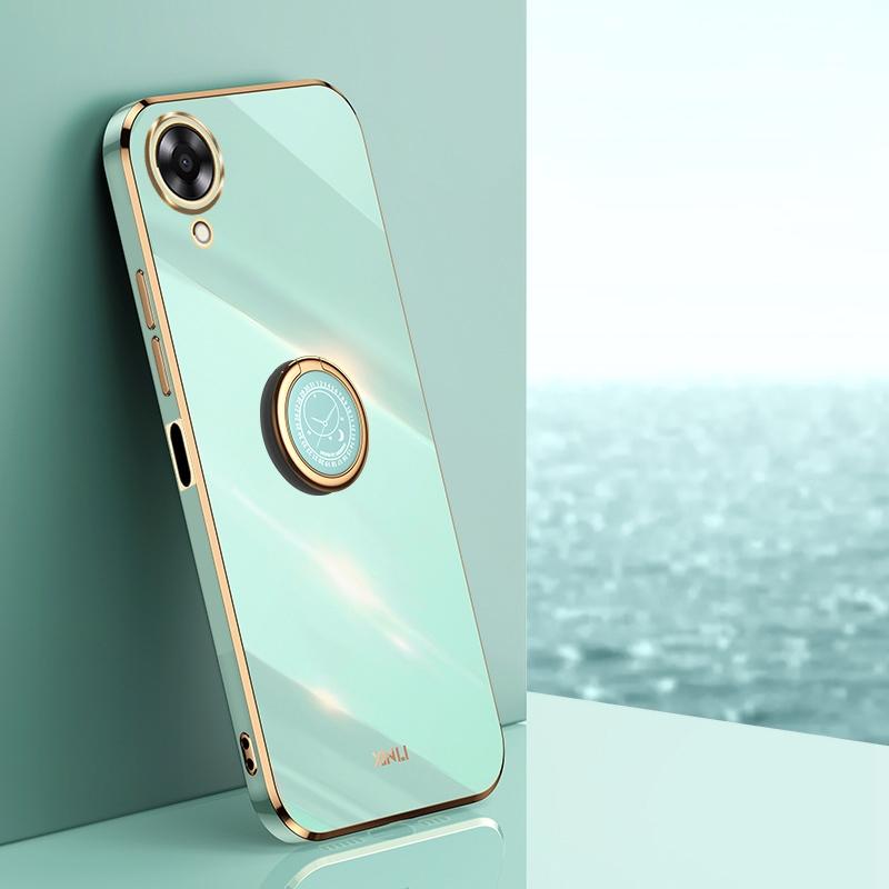 Θήκη κινητού τηλεφώνου OPPO A17k XINLI με ευθείες άκρες, 6D επιμετάλλωση TPU με δακτύλιο στήριξης (Μέντας Πράσινο)