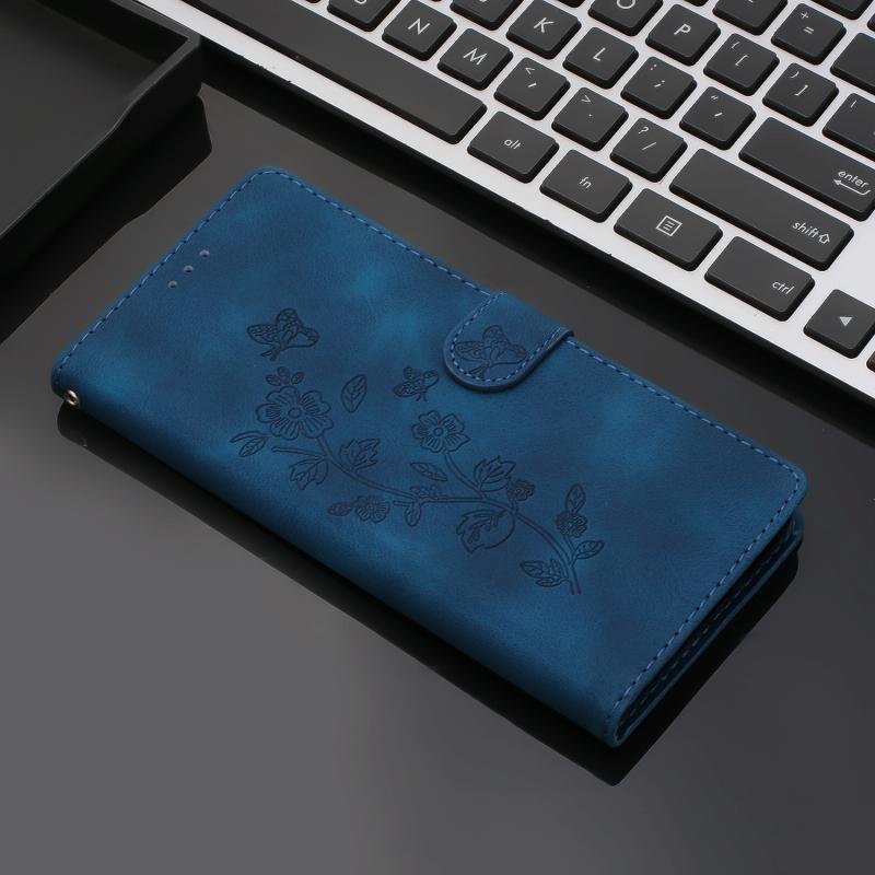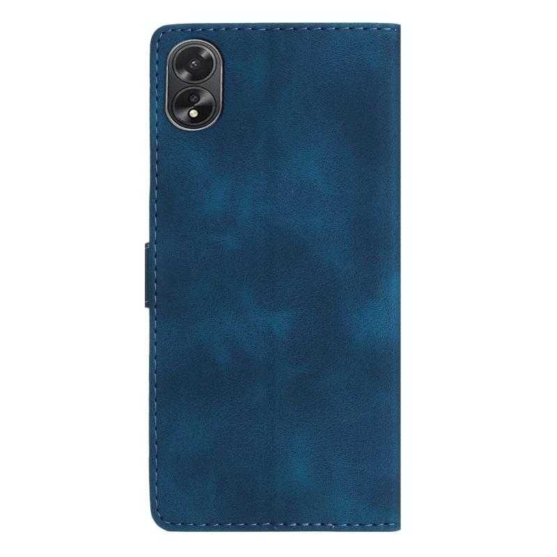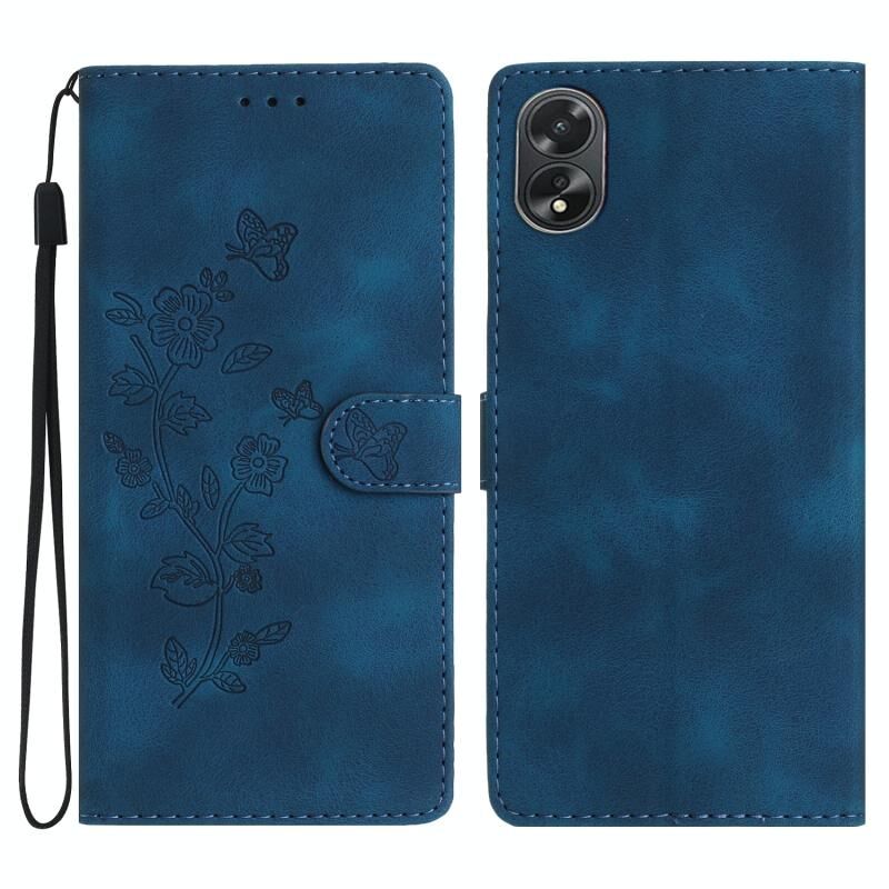 Θήκη τηλεφώνου από δέρμα με ανάγλυφο σχέδιο λουλουδιών και πεταλούδας για OPPO A18 (Μπλε)