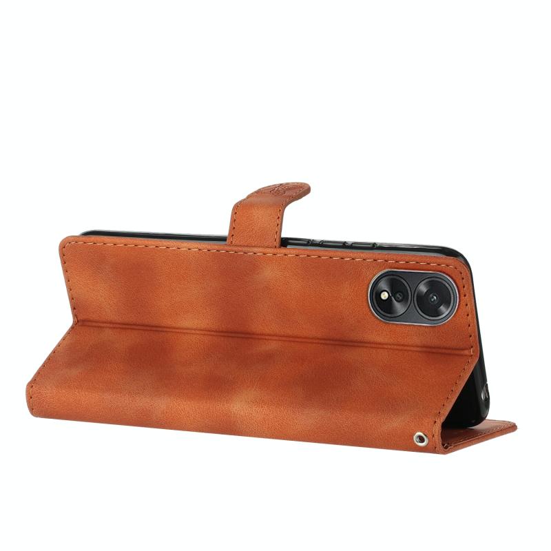 Θήκη τηλεφώνου δερμάτινη με ανάγλυφο σχέδιο λουλουδιών και πεταλούδας για OPPO A18 (Καφέ)