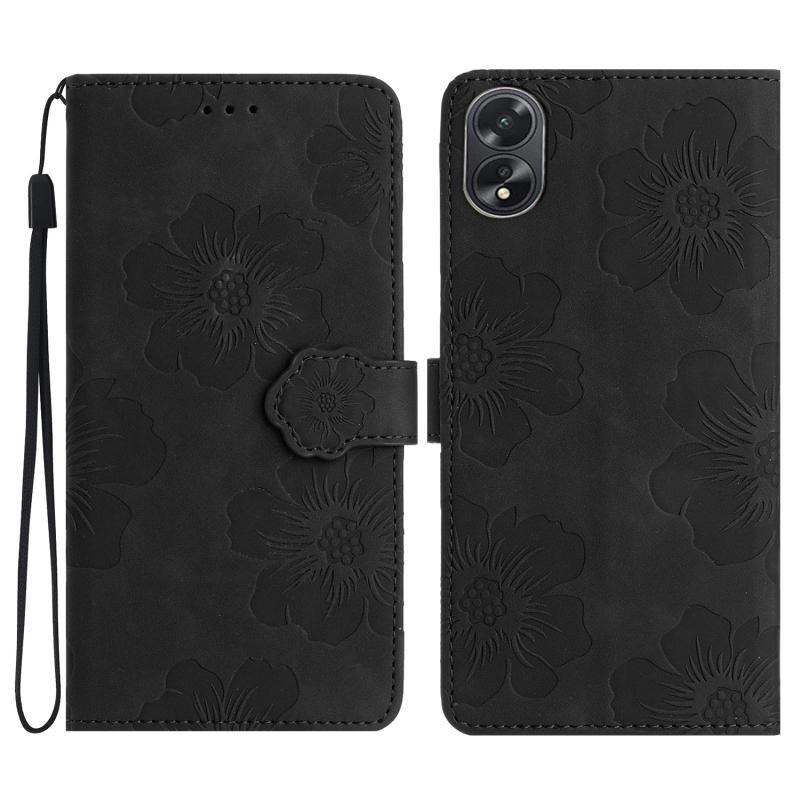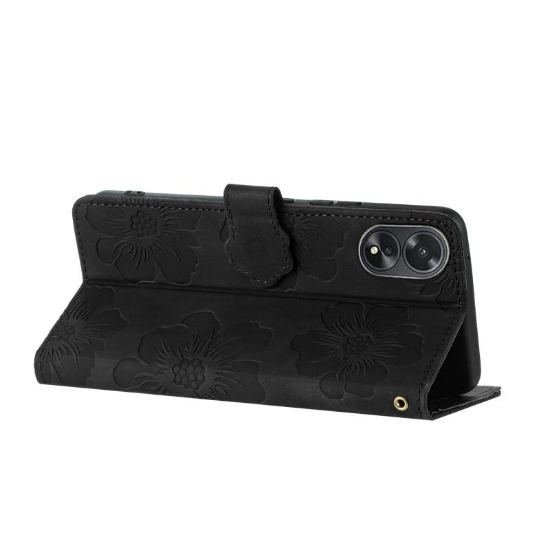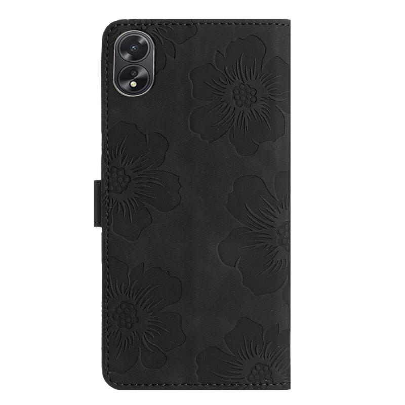 Θήκη τηλεφώνου από δέρμα με ανάγλυφο σχέδιο λουλουδιών για OPPO A18 (Μαύρο)