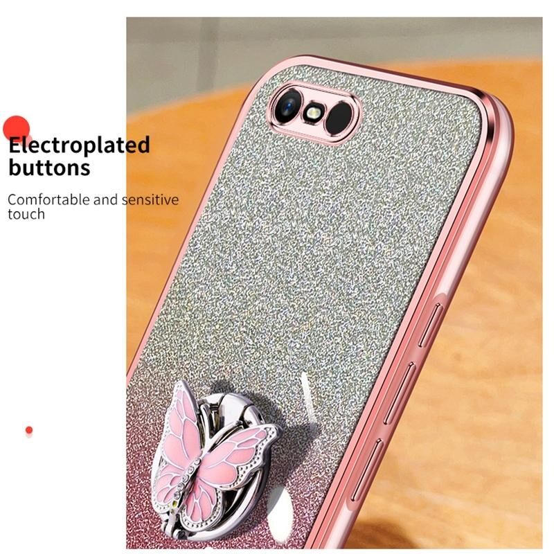 Για OPPO A1k Επιμεταλλωμένο διαβάθμιση Glitter πεταλούδα κάτοχος TPU τηλέφωνο υπόθεση (ρόζ)