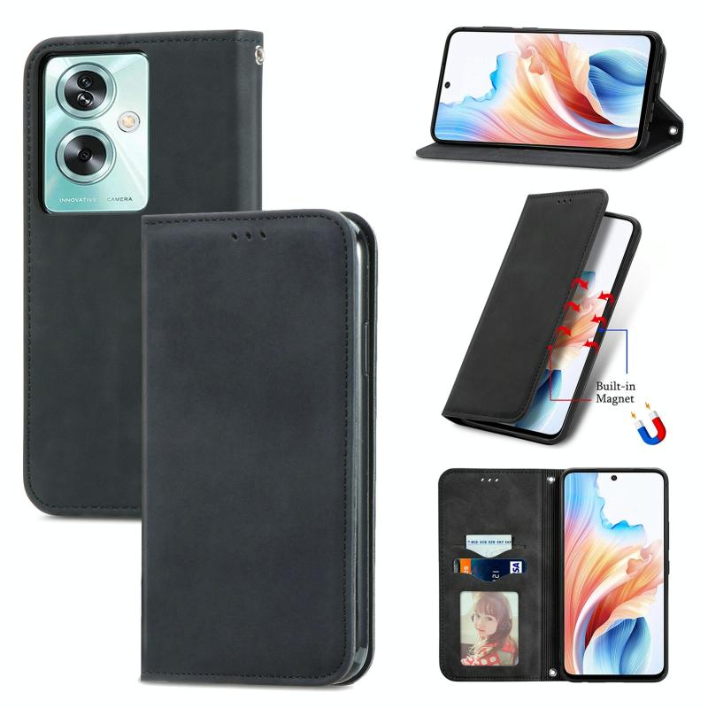 Για OPPO A2 5G Μαγνητική Δερμάτινη Θήκη με Υφή Retro (Μαύρο)