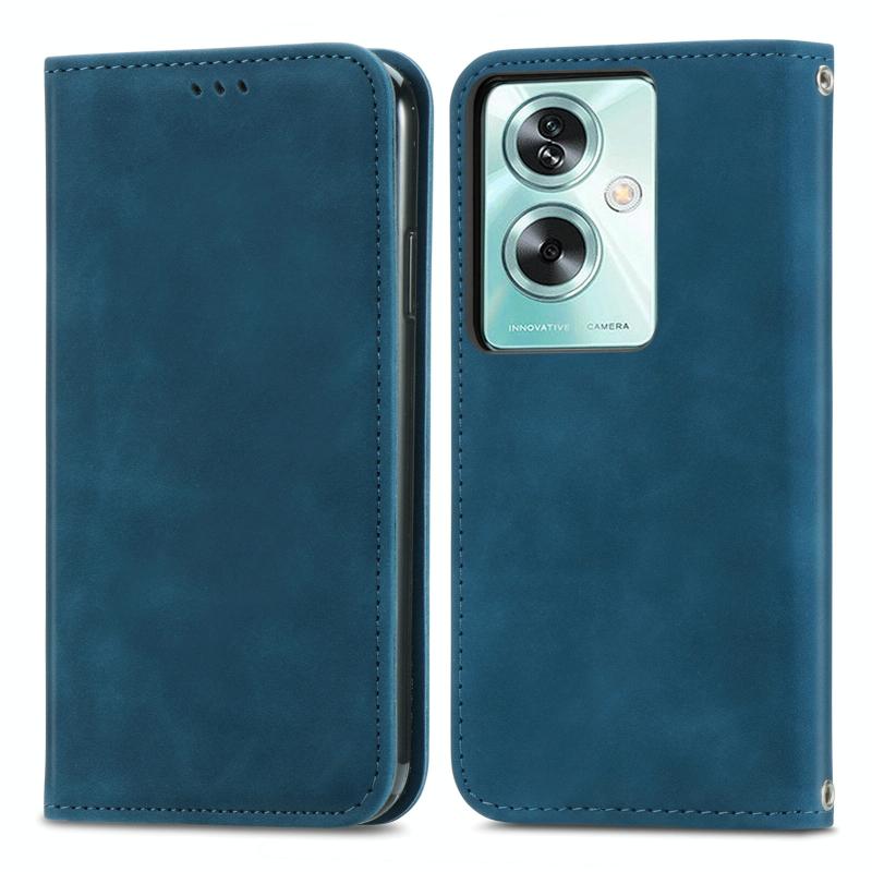 Για OPPO A2 5G Μαγνητική Δερμάτινη Θήκη με Υφή Retro (Μπλε)