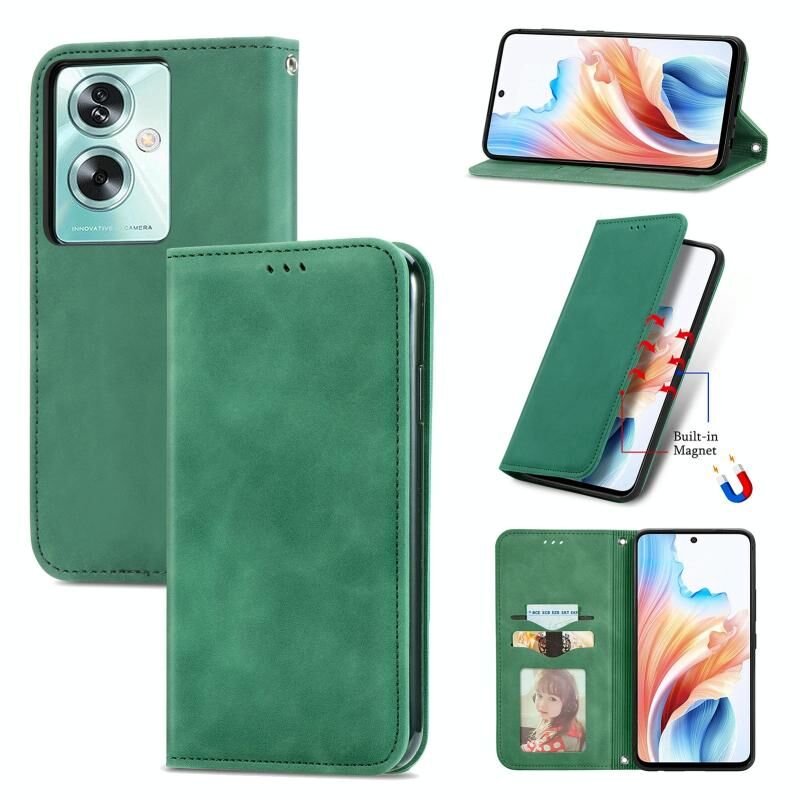 Για OPPO A2 5G Μαγνητική Δερμάτινη Θήκη με Υφή Retro (Πράσινο)