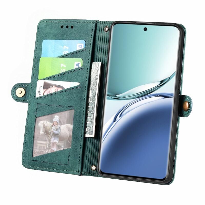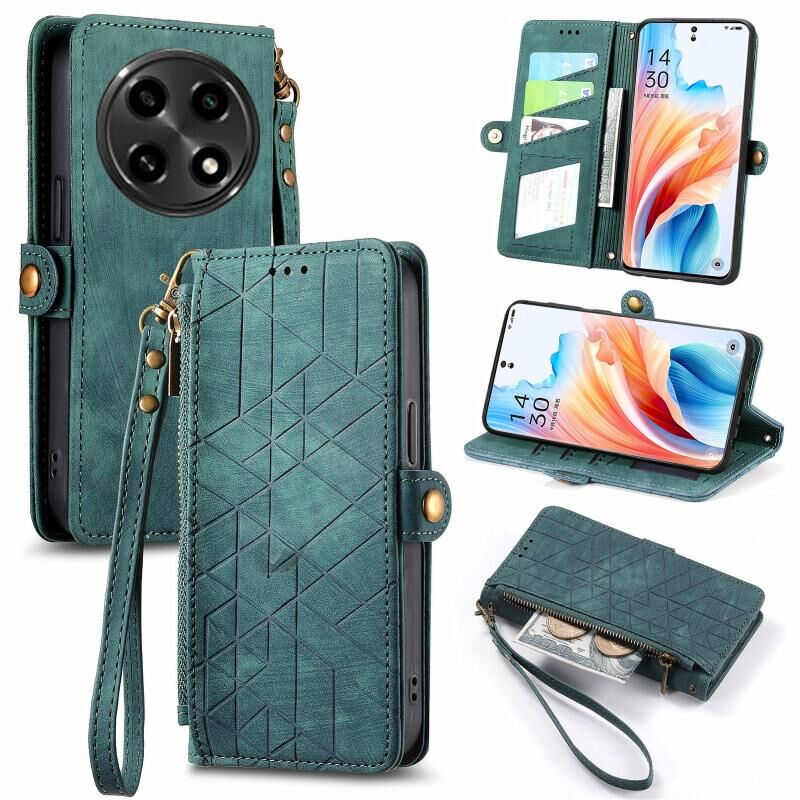 Για OPPO A2 Pro 5G γεωμετρική φερμουάρ πορτοφόλι πλευρά πόρπη δέρμα τηλέφωνο υπόθεση (πράσινο)