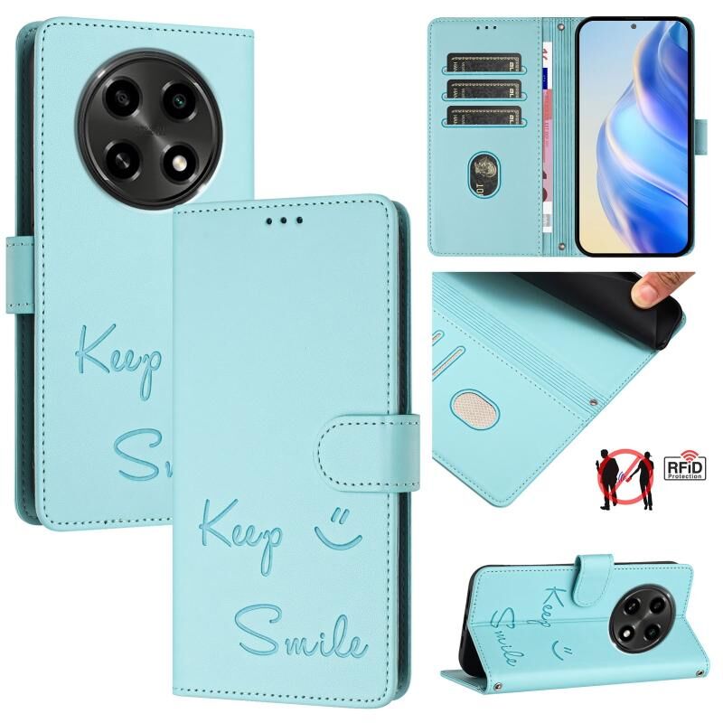 Για OPPO A2 Pro 5G Χαμόγελο ανάγλυφο RFID δερμάτινη θήκη τηλεφώνου (πράσινο χρώμα)