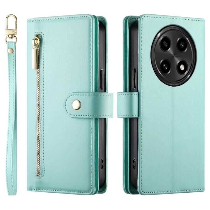 Θήκη τηλεφώνου από δέρμα με θήκη πορτοφολιού με φερμουάρ και εννέα υποδοχές καρτών για OPPO A2 Pro (Μέντας πράσινο)