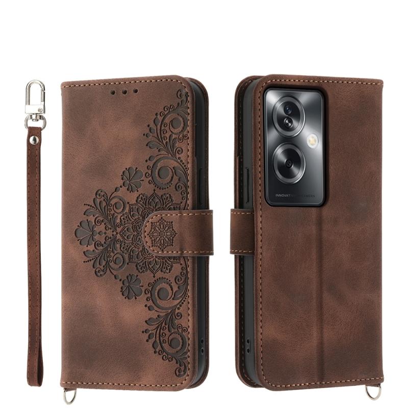 For OPPO A2 Skin Feel Flowers Embossed Wallet Leather Phone Case(Brown)