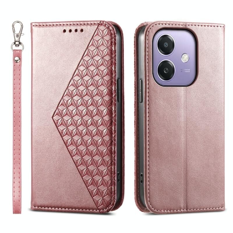 Για το OPPO A3 4G / 5G / A3X 4G / 5G Ινδία Cubic Grid Calf Texture μαγνητική δερμάτινη θήκη τηλεφώνου (Rose Gold)