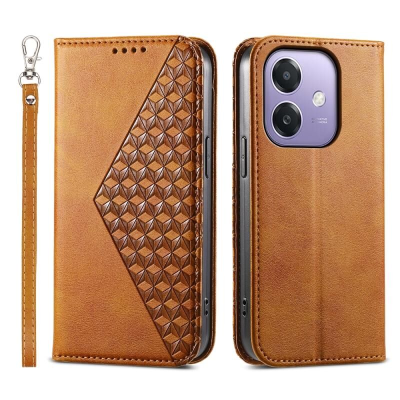 Για το OPPO A3 4G / 5G / A3X 4G / 5G Ινδία Cubic Grid Calf Texture μαγνητική δερμάτινη θήκη τηλεφώνου (κίτρινο)