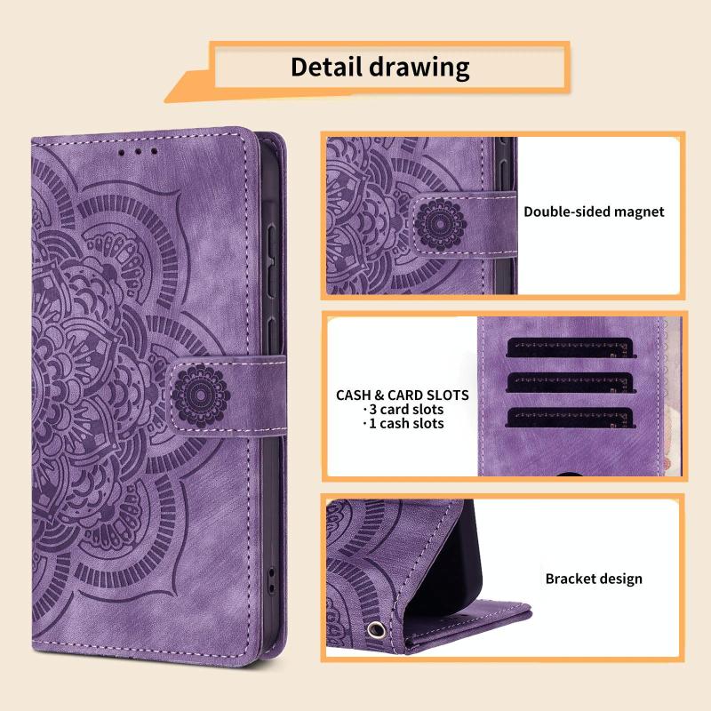 For OPPO A3 4G / 5G / A40 4G Mandala Embossed Retro Frosted Leather Phone Case(Purple)