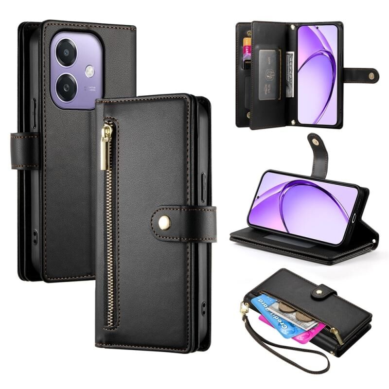 Για OPPO A3 4G / 5G Global / A3X 4G / 5G Ινδία Εννέα κάρτα υποδοχή φερμουάρ πορτοφόλι τσάντα δερμάτινη θήκη τηλεφώνου (Μαύρο)