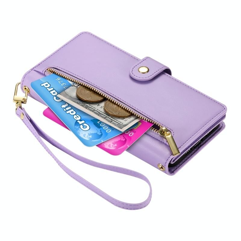 Για OPPO A3 4G / 5G Global / A3X 4G / 5G Ινδία Εννέα κάρτα-θυρίδα φερμουάρ πορτοφόλι τσάντα δερμάτινη θήκη τηλεφώνου (Μωβ)