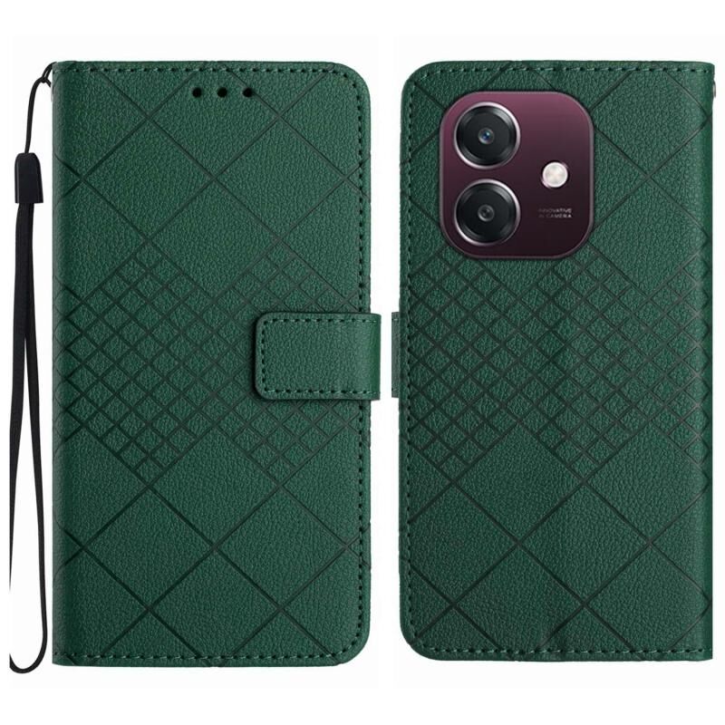 Για το OPPO A3 4G Global / 5G Global Rhombic Grid Texture Δερμάτινη θήκη τηλεφώνου (πράσινο)