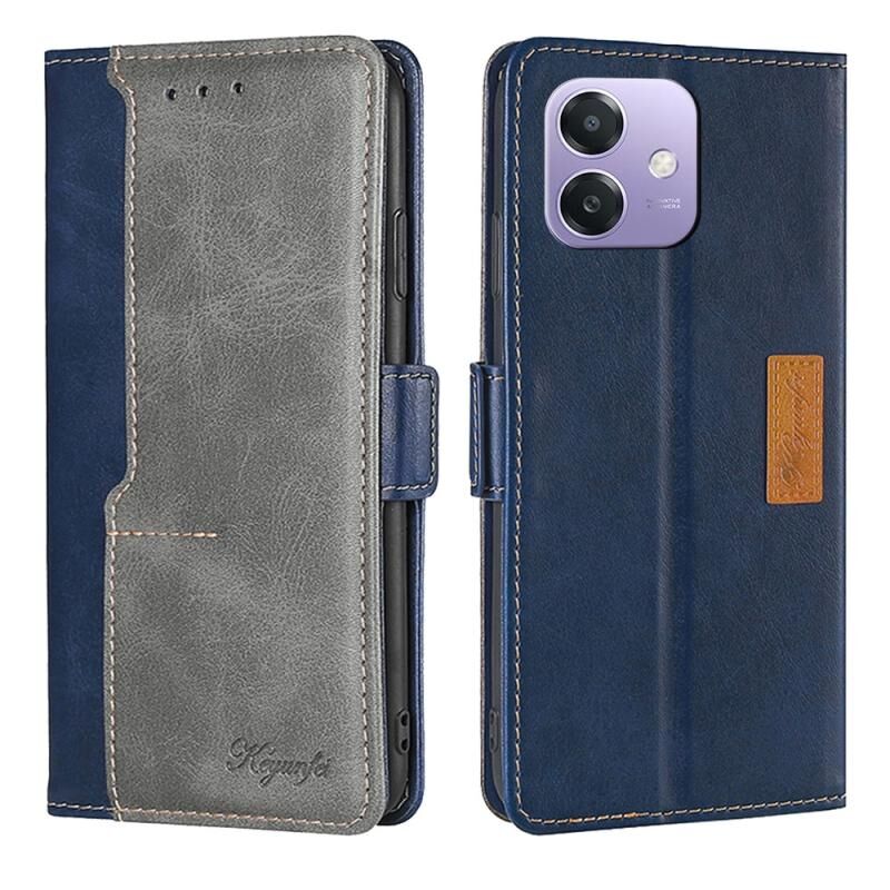 Για OPPO A3 5G Ινδία αντίθεση χρώμα πλευρά πόρπη δερμάτινη θήκη τηλεφώνου υπόθεση (μπλε + γκρι)
