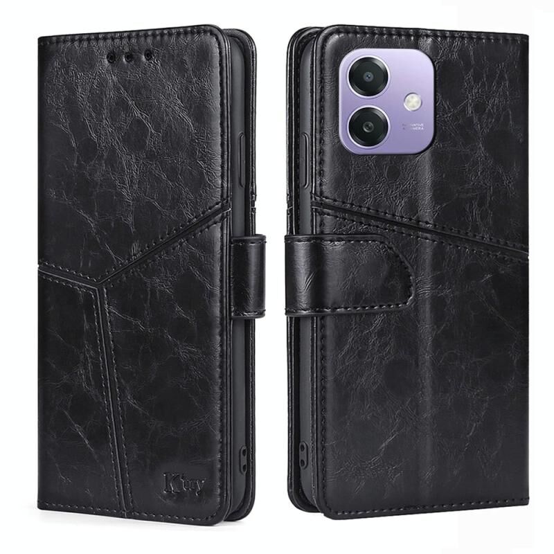 Για OPPO A3 5G Ινδία γεωμετρική ραφή δερμάτινη θήκη τηλεφώνου (Μαύρο)