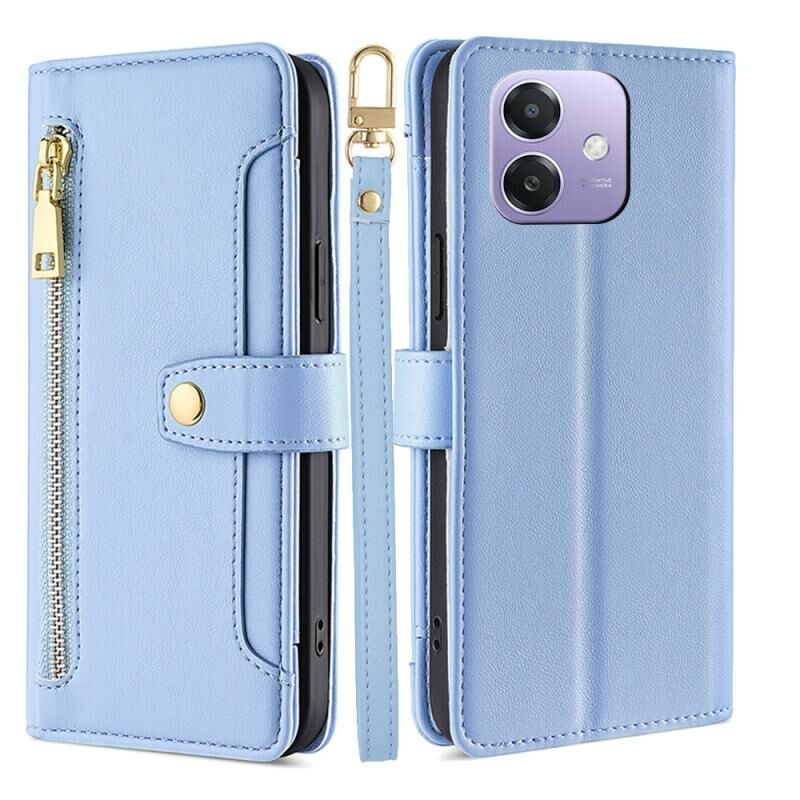 Για OPPO A3 5G Ινδία Πρόβατα Υφή Cross-body φερμουάρ πορτοφόλι δερμάτινη θήκη τηλεφώνου (μπλε)