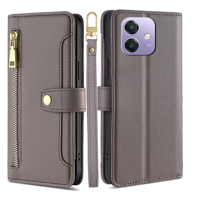 Για OPPO A3 5G Ινδία Πρόβατα Υφή Cross-body φερμουάρ πορτοφόλι δερμάτινη θήκη τηλεφώνου (γκρι)