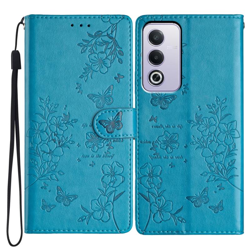 For OPPO A3 Pro 5G Butterflies and Flowers Leather Phone Case(Blue)