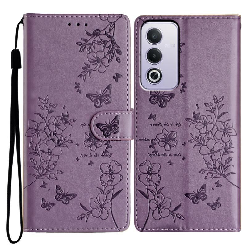 Θήκη τηλεφώνου από δέρμα με σχέδια πεταλούδες και λουλούδια για OPPO A3 Pro 5G (Μωβ)