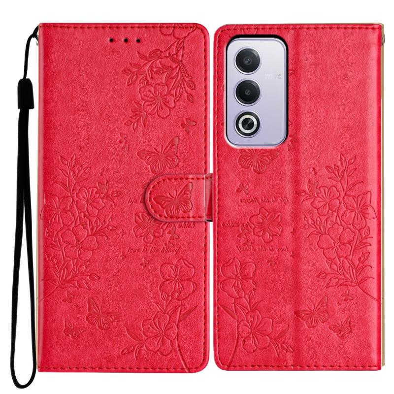 For OPPO A3 Pro 5G Butterflies and Flowers Leather Phone Case(Red)