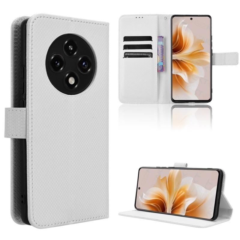 Για OPPO A3 Pro 5G Diamond Texture Δερμάτινη θήκη τηλεφώνου (λευκό)