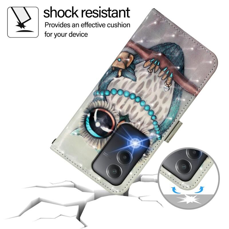 Θήκη τηλεφώνου από δέρμα με οριζόντιο άνοιγμα και τρισδιάστατη βαφή για OPPO A3 Pro 5G Global / A3 Pro 5G India (Γκρι κουκουβάγια)