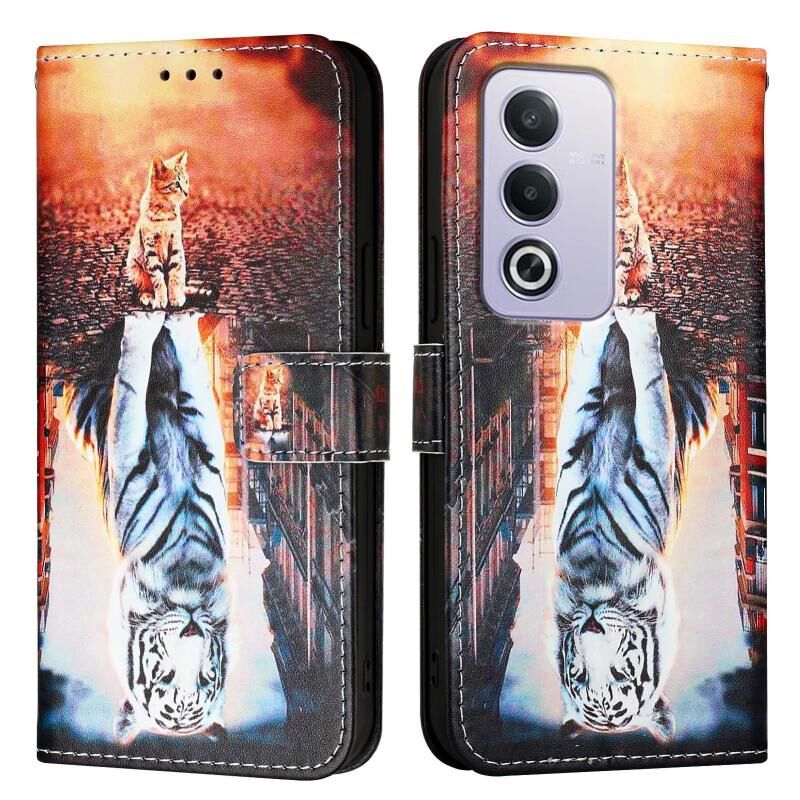 Θήκη τηλεφώνου από δέρμα με απλή ύφανση και πολύχρωμο σχέδιο (γάτες και τίγρεις) για OPPO A3 Pro 5G Global. (Κόκκινο)