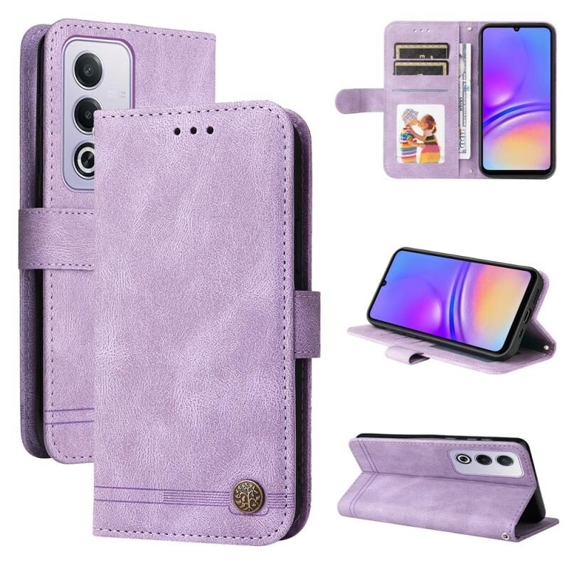 Για OPPO A3 Pro 5G Παγκόσμια / Ινδία δέρμα αισθάνονται ζωή δέντρο μεταλλικό κουμπί δέρμα τηλέφωνο υπόθεση (Μωβ)