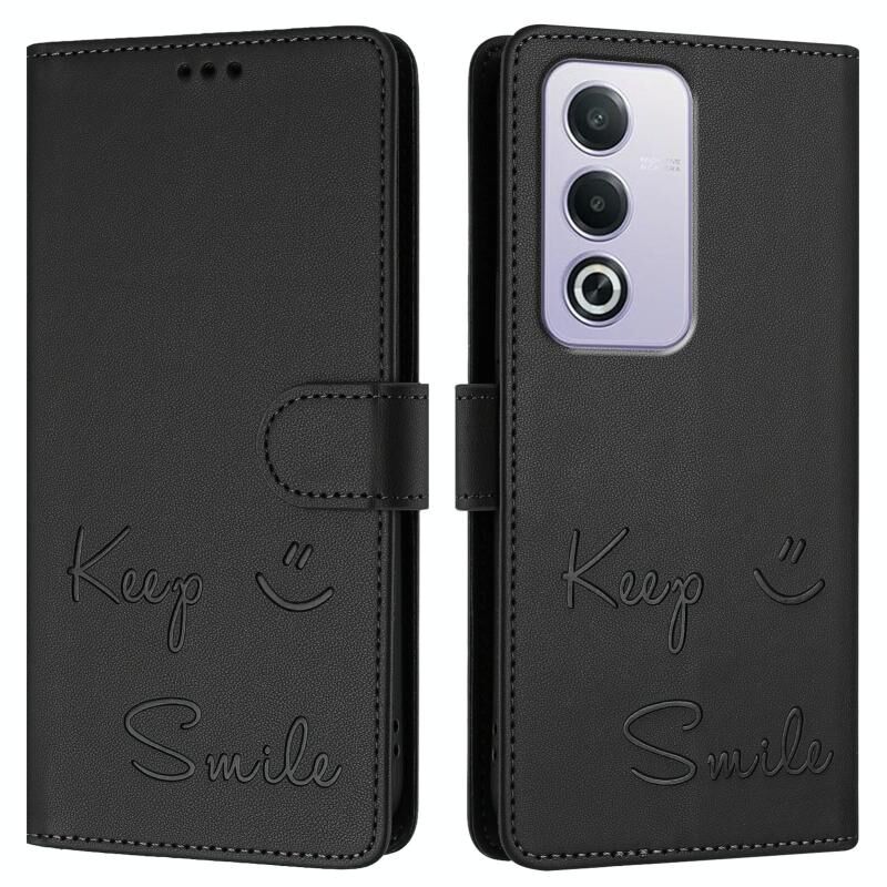 Για OPPO A3 Pro 5G Global / Ινδία Χαμόγελο ανάγλυφο RFID δερμάτινη θήκη τηλεφώνου (Μαύρο)