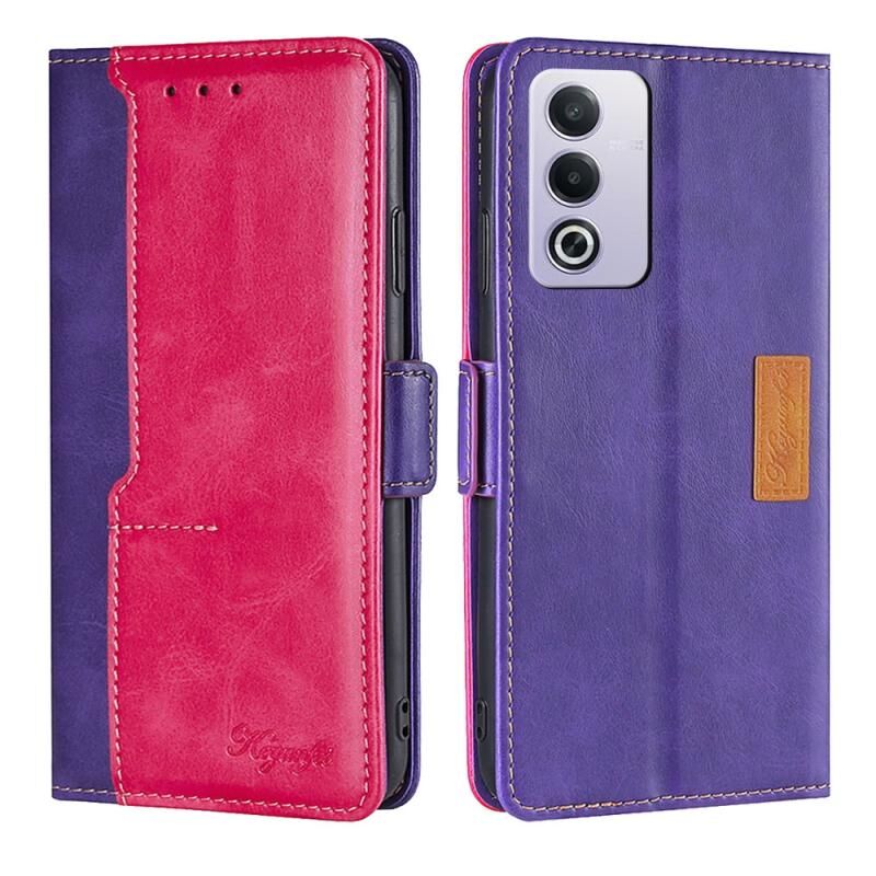 Για OPPO A3 Pro 5G Ινδία αντίθεση χρώμα πλευρά πόρπη δερμάτινη θήκη τηλεφώνου υπόθεση (Μωβ + Ροζένιο Κόκκινο)